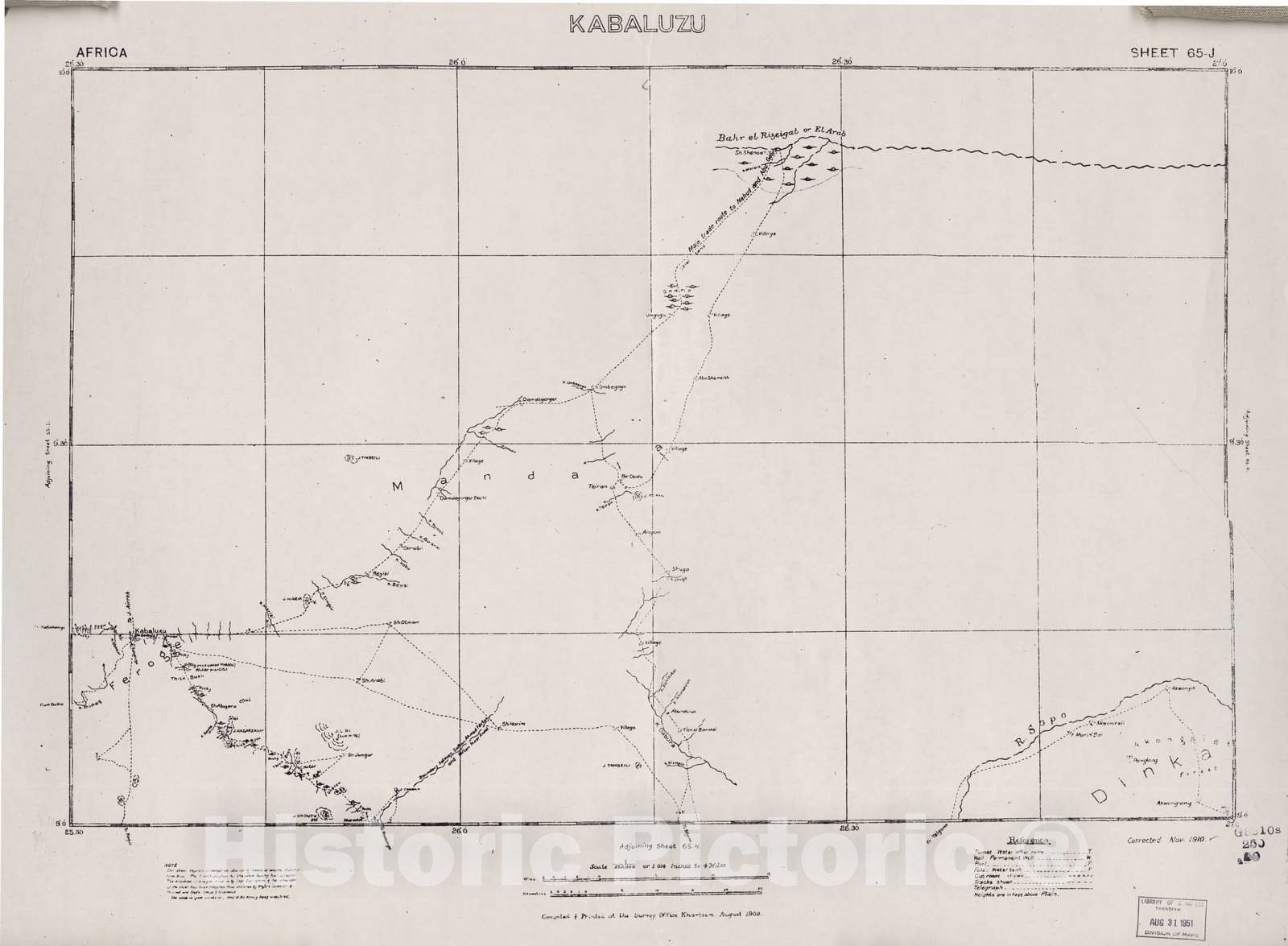 Historic 1909 Map - Sudan 1:250,000 - Kabaluzu Sheet 65-J Aug 1909 - Anglo-Egyptian Sudan