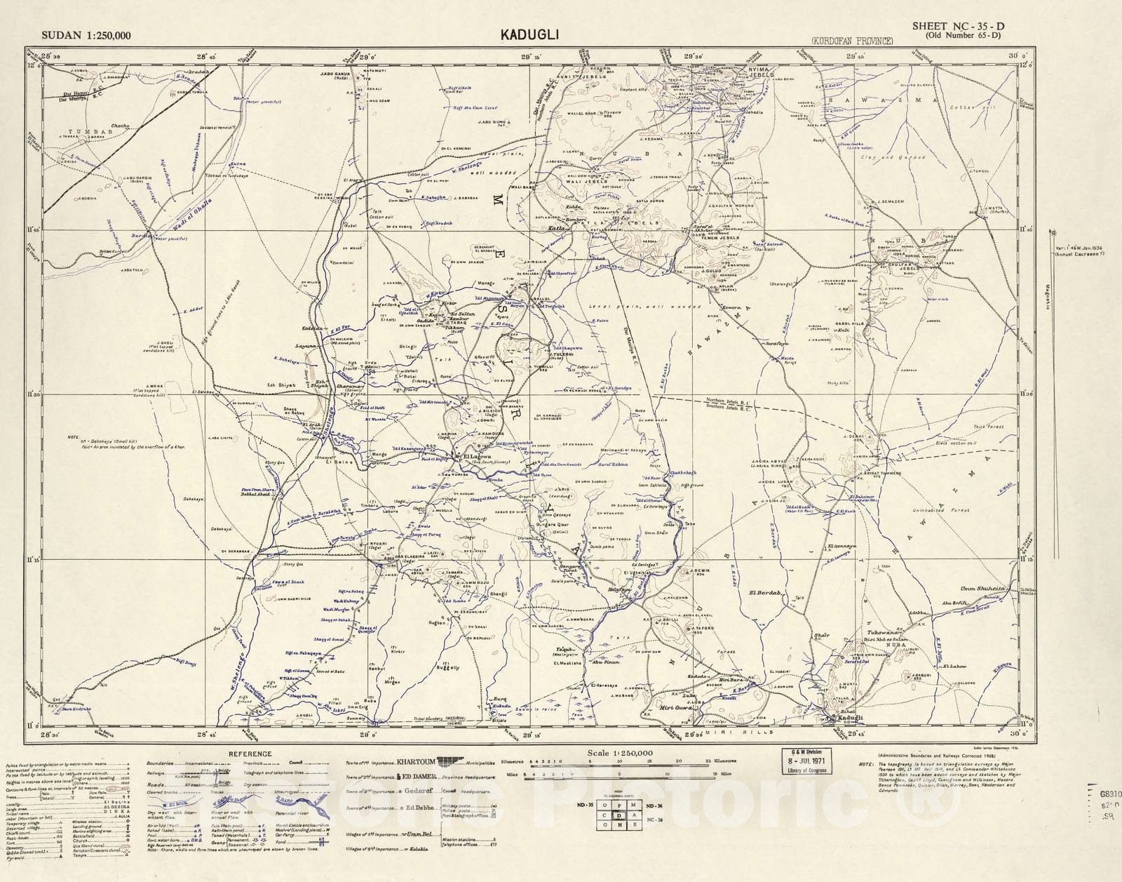 Historic 1909 Map - Sudan 1:250,000 - Kadugli Sheet NC-35-D (Old Number 65-D; No Month) 1968 - Anglo-Egyptian Sudan
