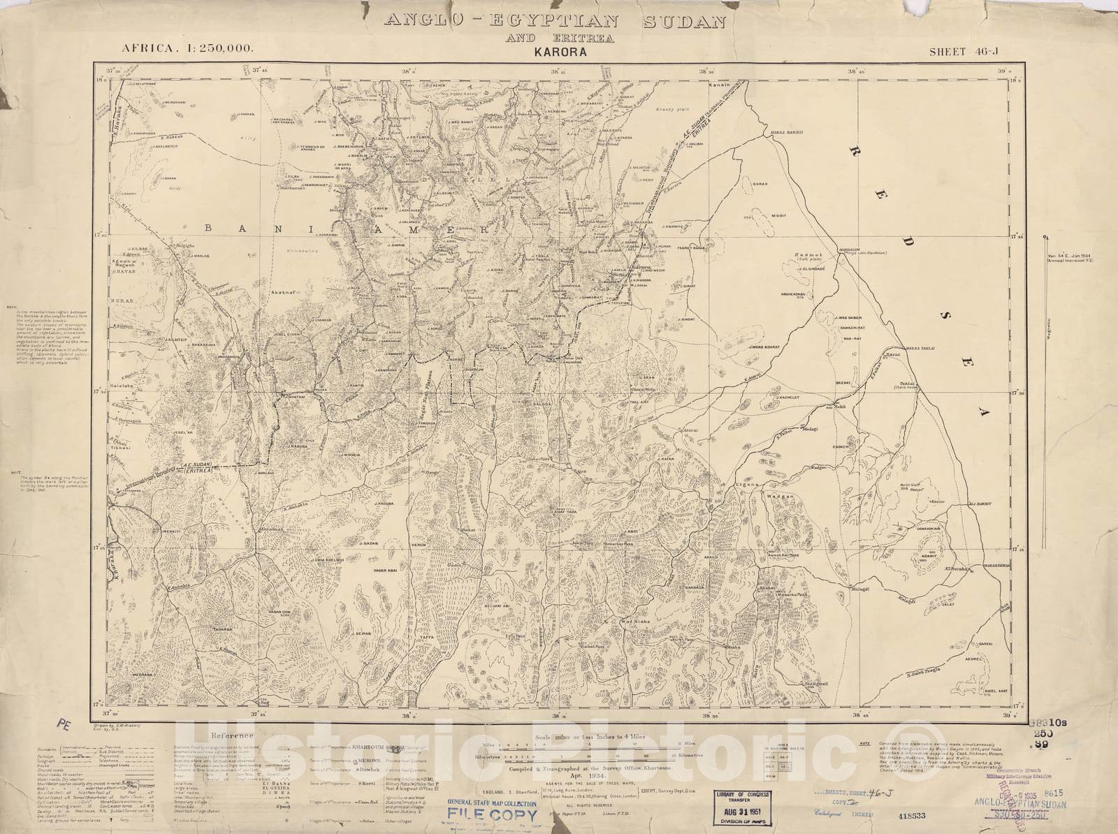 Historic 1909 Map - Sudan 1:250,000 - Karora Sheet 46-J Apr 1934 - Anglo-Egyptian Sudan