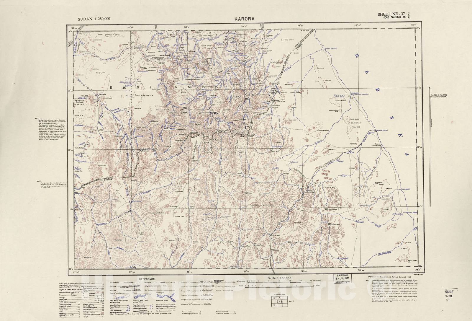 Historic 1909 Map - Sudan 1:250,000 - Karora Sheet NE-37-J (Old Number 46-J) 1966 - Anglo-Egyptian Sudan