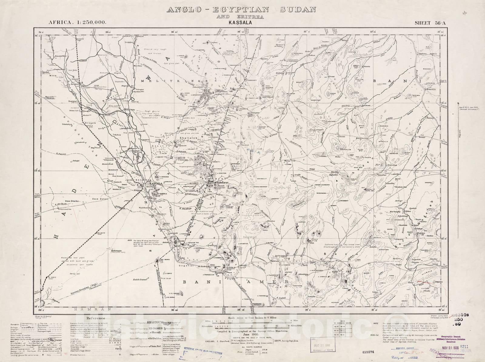 Historic 1909 Map - Sudan 1:250,000 - Kassala Sheet 56-A Jun 1935 - Anglo-Egyptian Sudan