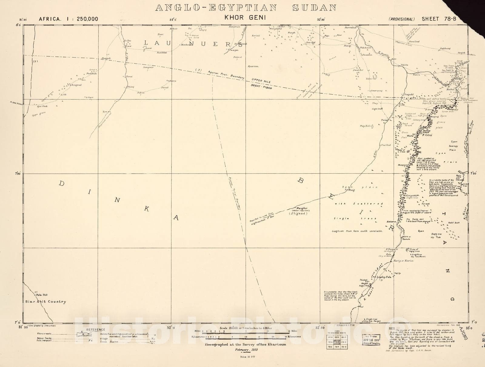 Historic 1909 Map - Sudan 1:250,000 - Khor Geni Sheet 78-B Feb 1913 - Anglo-Egyptian Sudan