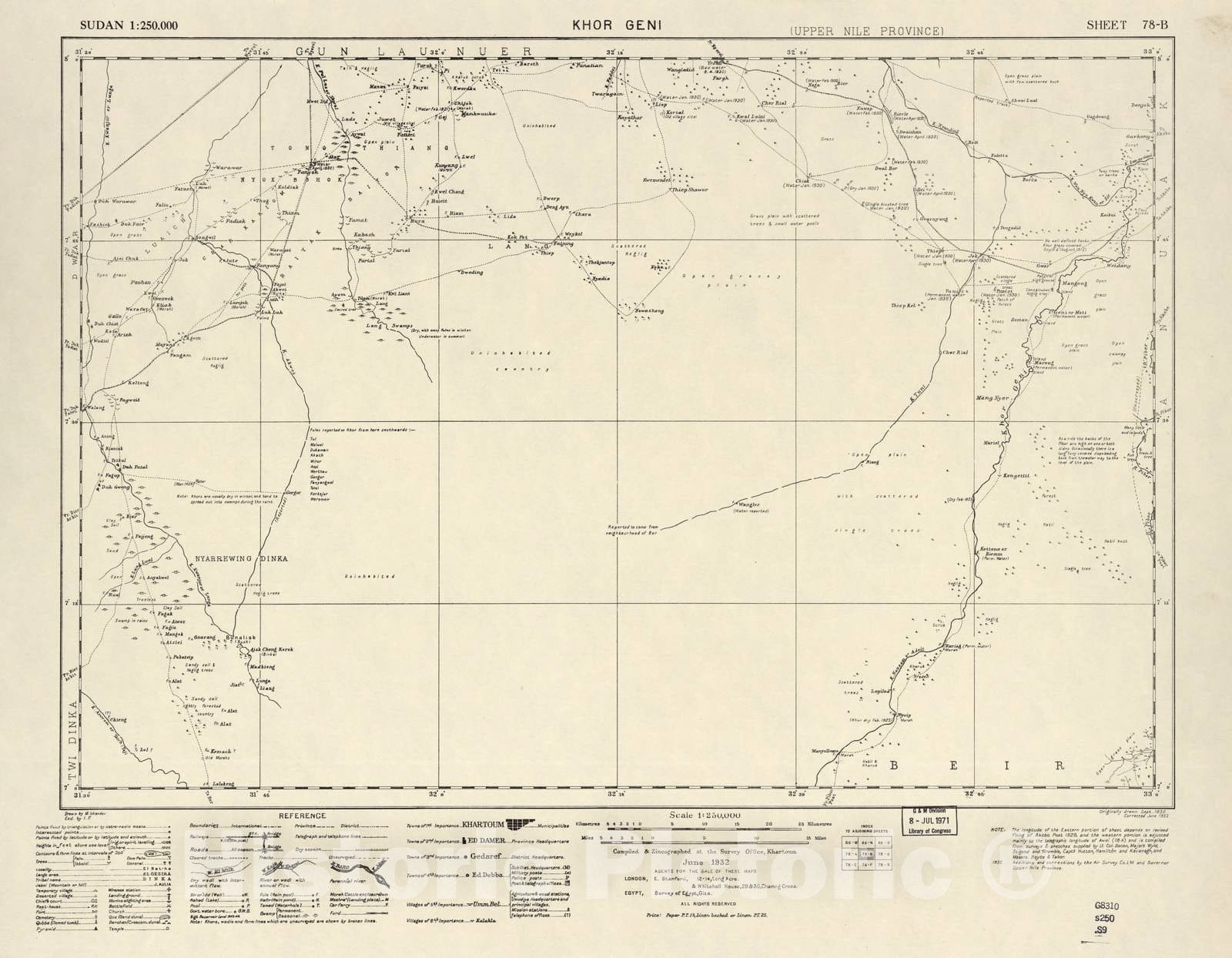 Historic 1909 Map - Sudan 1:250,000 - Khor Geni Sheet 78-B Jun 1932 - Anglo-Egyptian Sudan