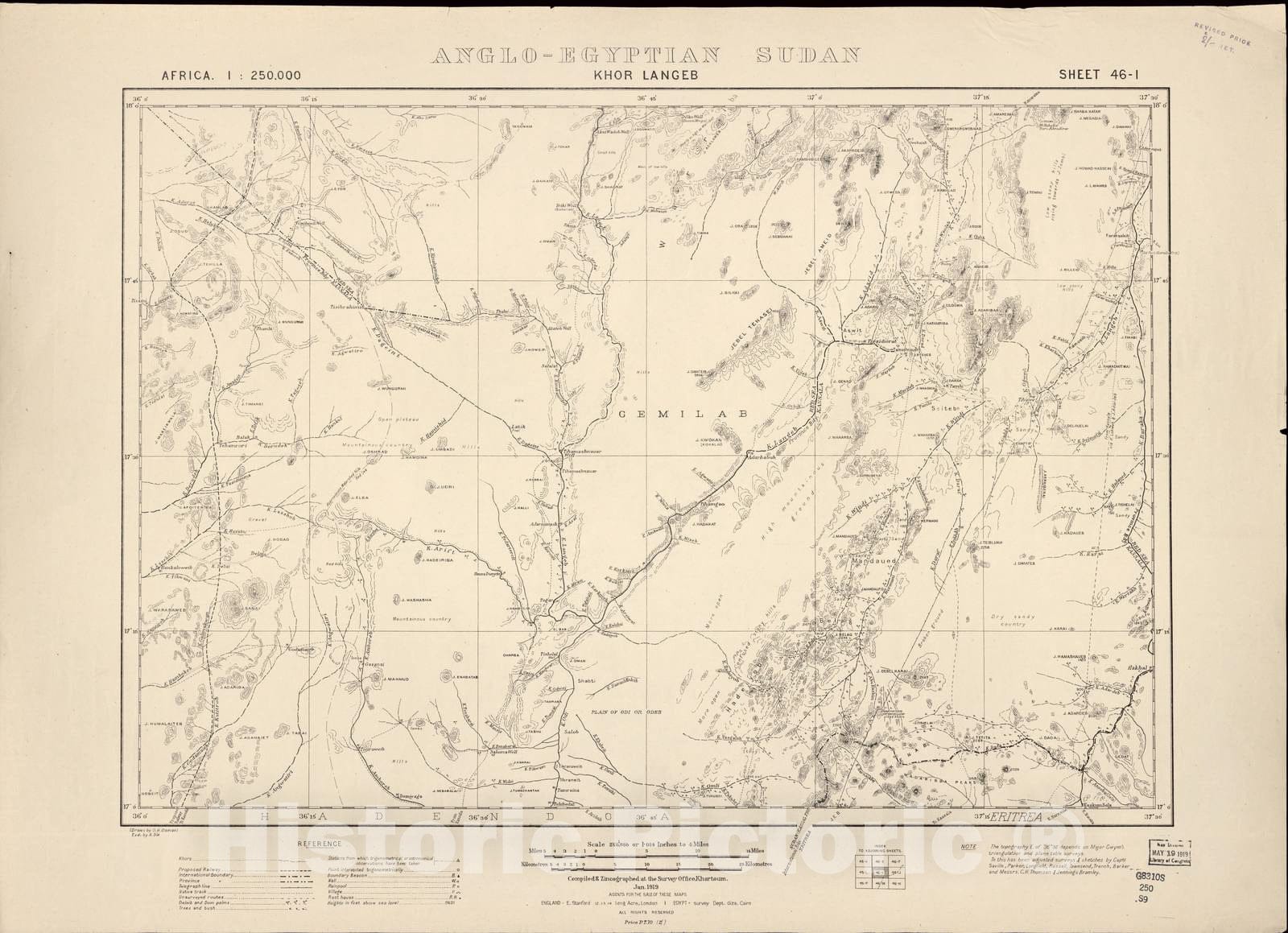 Historic 1909 Map - Sudan 1:250,000 - Khor Langeb Sheet 46-I Jan 1919 - Anglo-Egyptian Sudan