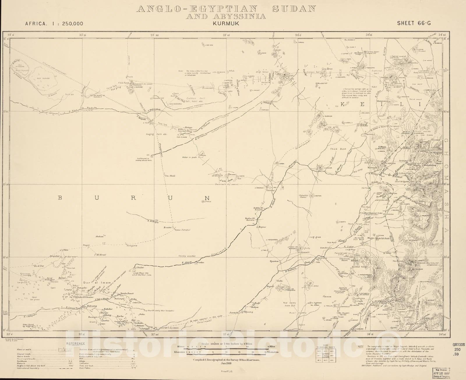 Historic 1909 Map - Sudan 1:250,000 - Kurmuk Sheet 66-G Jan 1918 - Anglo-Egyptian Sudan