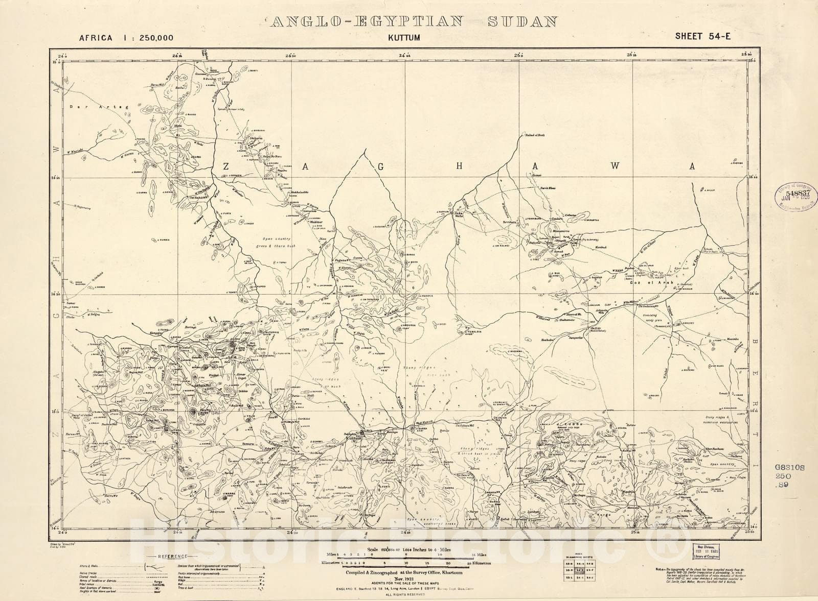 Historic 1909 Map - Sudan 1:250,000 - Kuttum Sheet 54-E Nov 1921 - Anglo-Egyptian Sudan