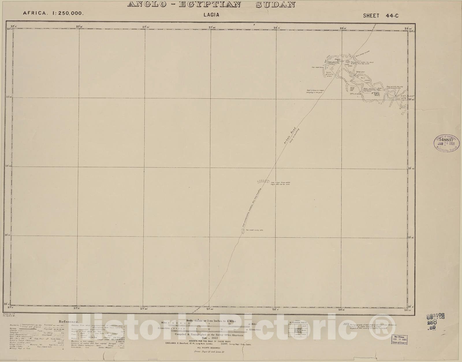 Historic 1909 Map - Sudan 1:250,000 - Lagia Sheet 44-C Nov 1922 - Anglo-Egyptian Sudan
