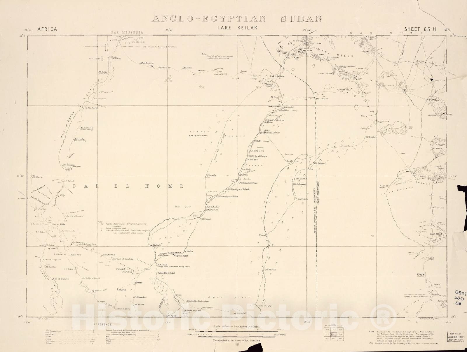 Historic 1909 Map - Sudan 1:250,000 - Lake Keilak Sheet 65-H 1911 - Anglo-Egyptian Sudan