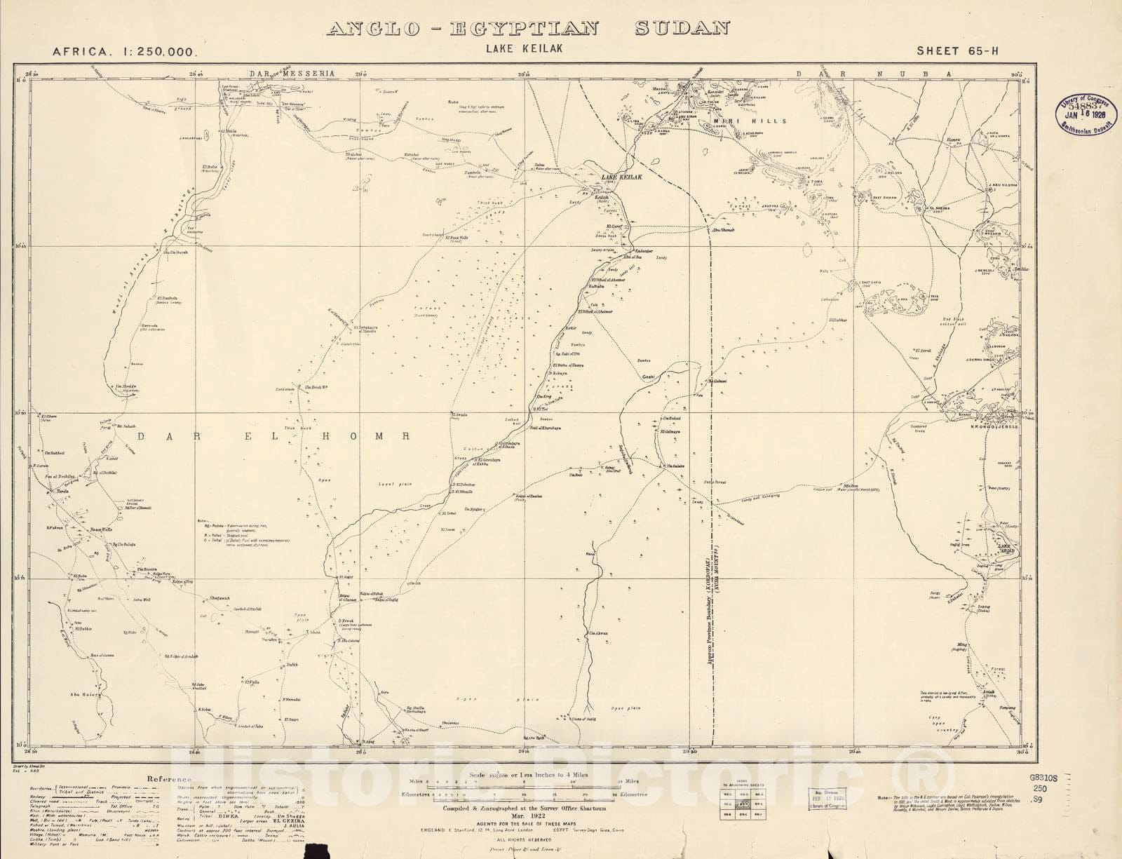 Historic 1909 Map - Sudan 1:250,000 - Lake Keilak Sheet 65-H Mar 1922 - Anglo-Egyptian Sudan