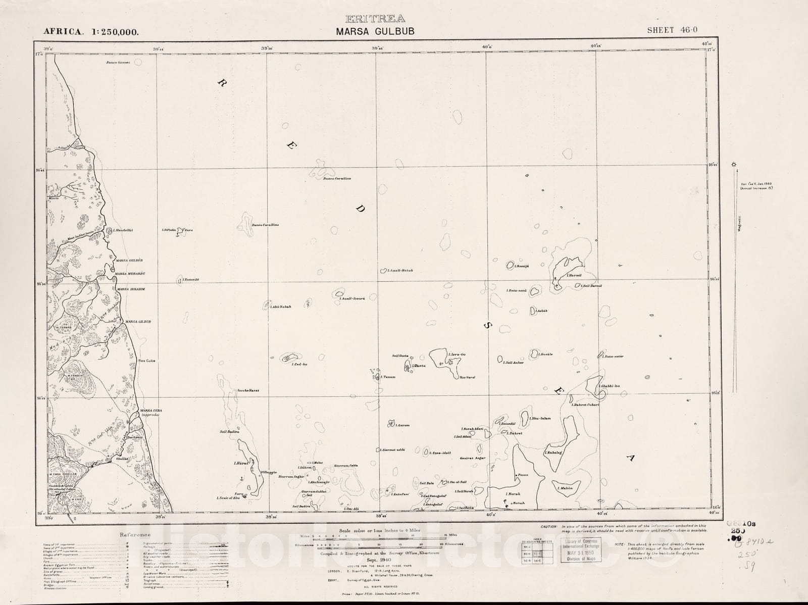 Historic 1909 Map - Sudan 1:250,000 - Marsa Gulbub Sheet 46-O Sep 1940 - Anglo-Egyptian Sudan