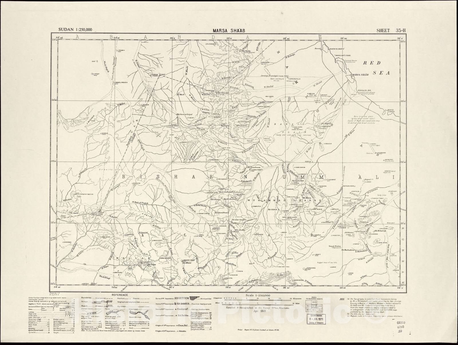 Historic 1909 Map - Sudan 1:250,000 - Mersa Shab Sheet 35-H Apr 1931 - Anglo-Egyptian Sudan