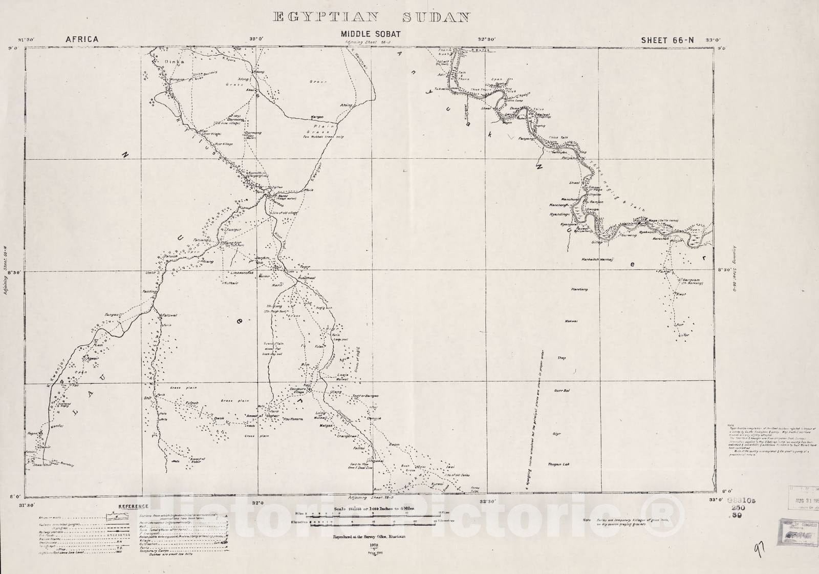 Historic 1909 Map - Sudan 1:250,000 - Middle Sobat Sheet 66-N (No Month) 1910 - Anglo-Egyptian Sudan
