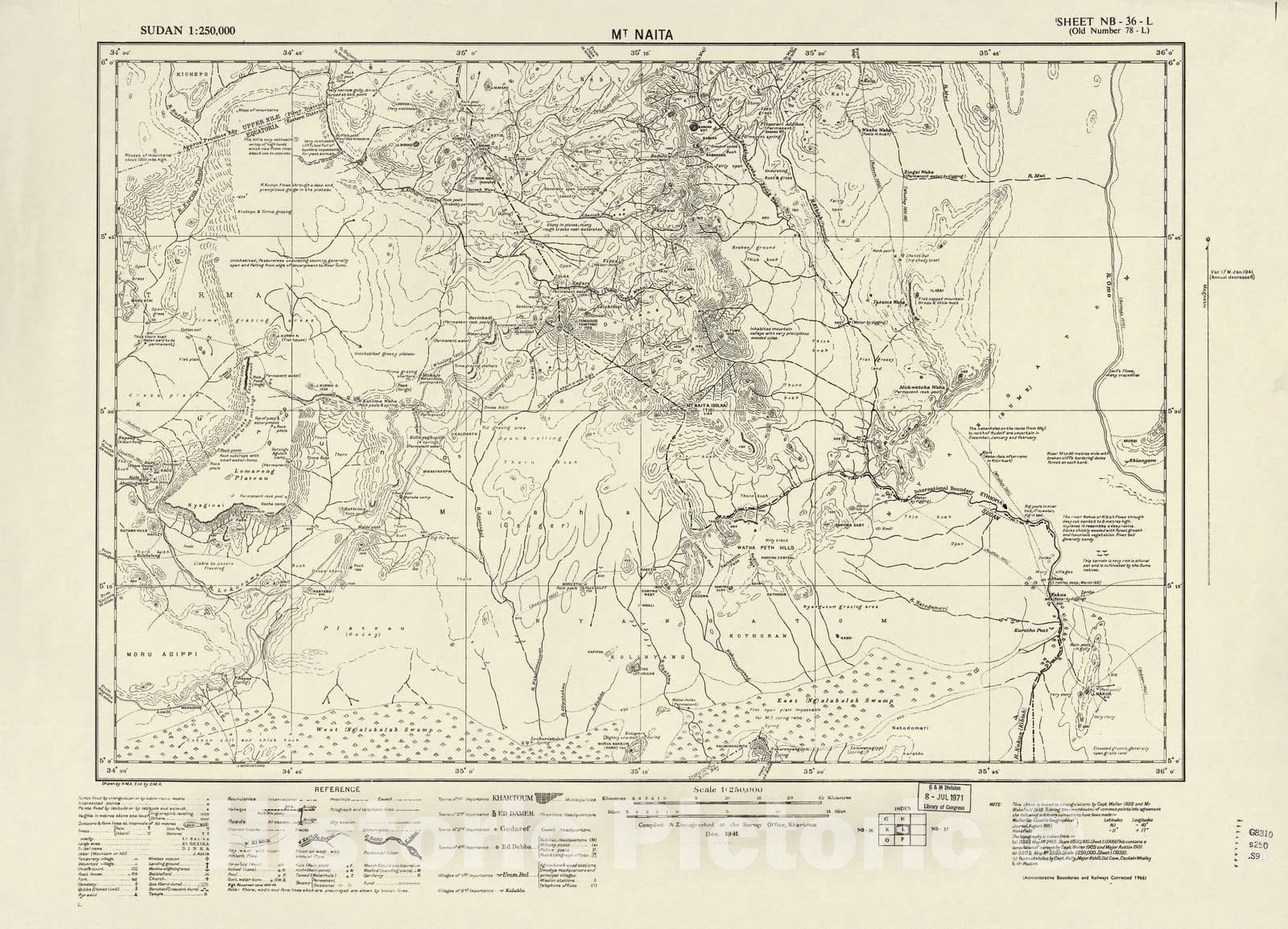 Historic 1909 Map - Sudan 1:250,000 - Mt Naita Sheet NB-36-L (Old Number 78-L; No Month) 1966 - Anglo-Egyptian Sudan