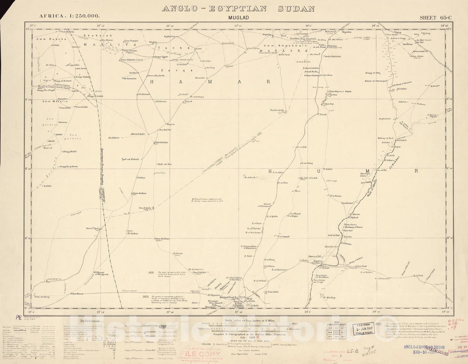 Historic 1909 Map - Sudan 1:250,000 - Muglad Sheet 65-C Jul 1931 - Anglo-Egyptian Sudan
