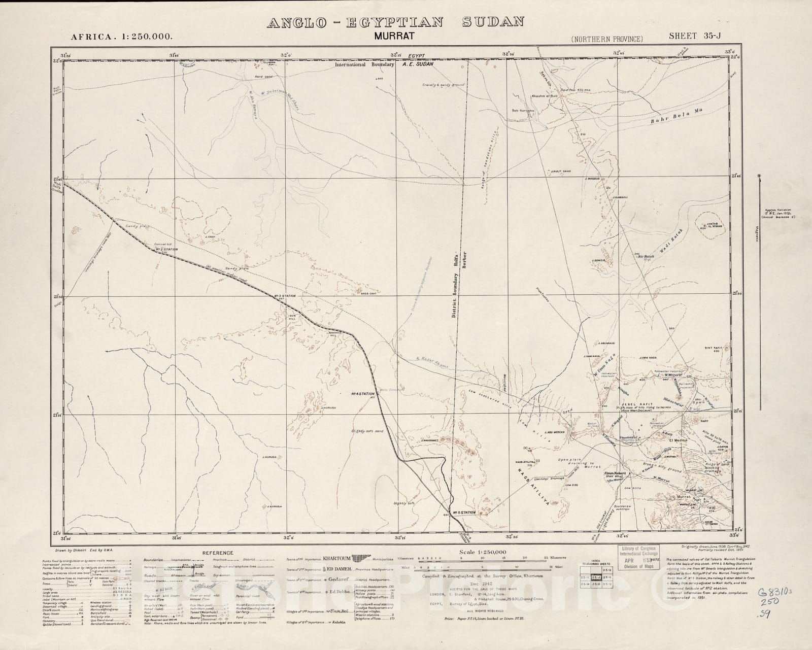 Historic 1909 Map - Sudan 1:250,000 - Murrat Sheet 35-J Dec 1942 - Anglo-Egyptian Sudan