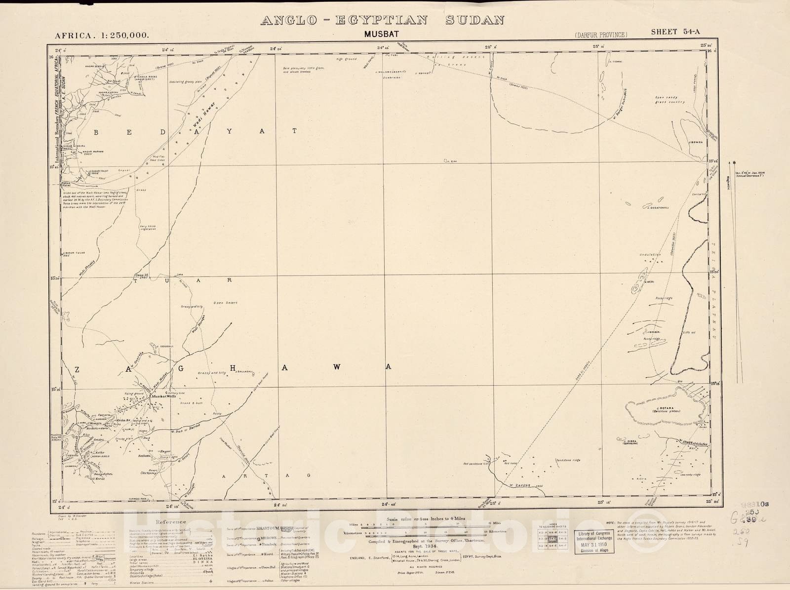 Historic 1909 Map - Sudan 1:250,000 - Musbat Sheet 54-A Sep 1934 - Anglo-Egyptian Sudan