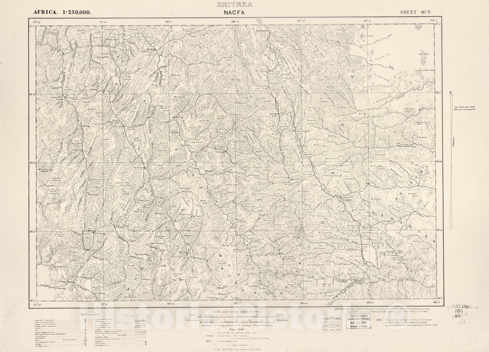Historic 1909 Map - Sudan 1:250,000 - Nacfa Sheet 46-N Sep 1940 - Anglo-Egyptian Sudan
