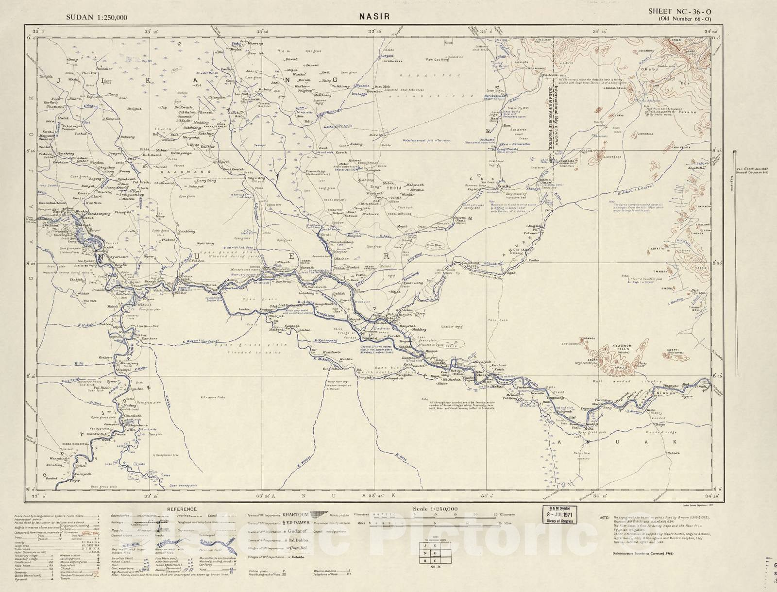 Historic 1909 Map - Sudan 1:250,000 - Nasir Sheet NC-36-O (Old Number 66-O; No Month) 1966 - Anglo-Egyptian Sudan