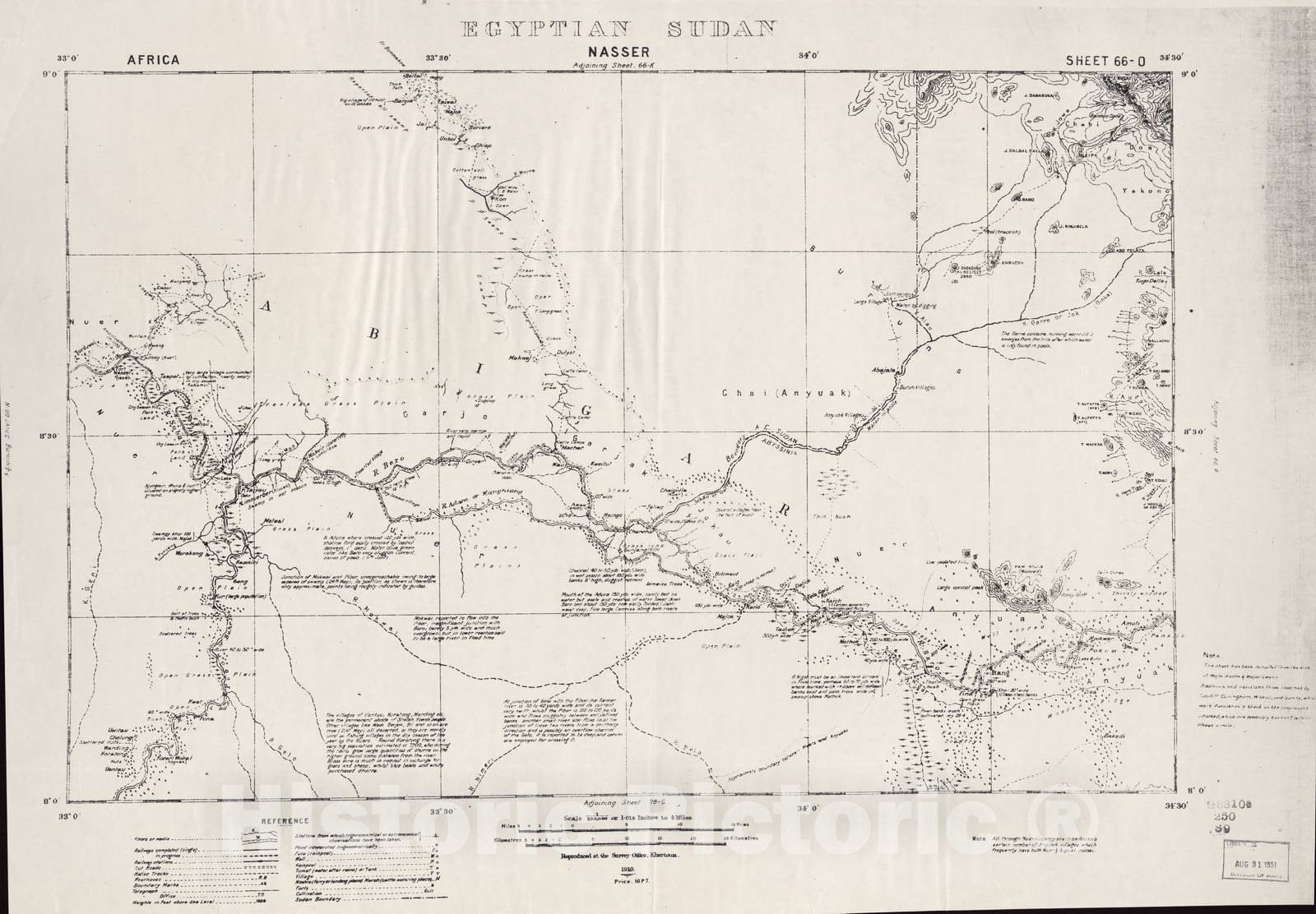 • Historic 1909 Map - Sudan 1:250,000 - Nasser Sheet 66-O (No Month) 1910 - Anglo-Egyptian Sudan