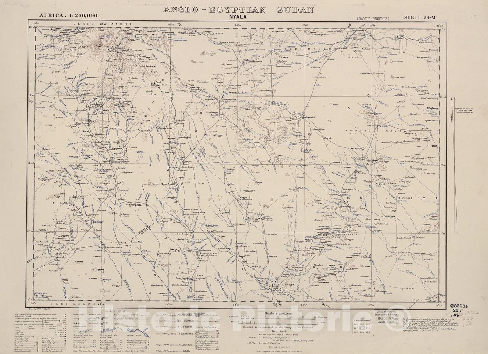 Historic 1909 Map - Sudan 1:250,000 - Nyala Sheet 54-M Dec 1944 - Anglo-Egyptian Sudan