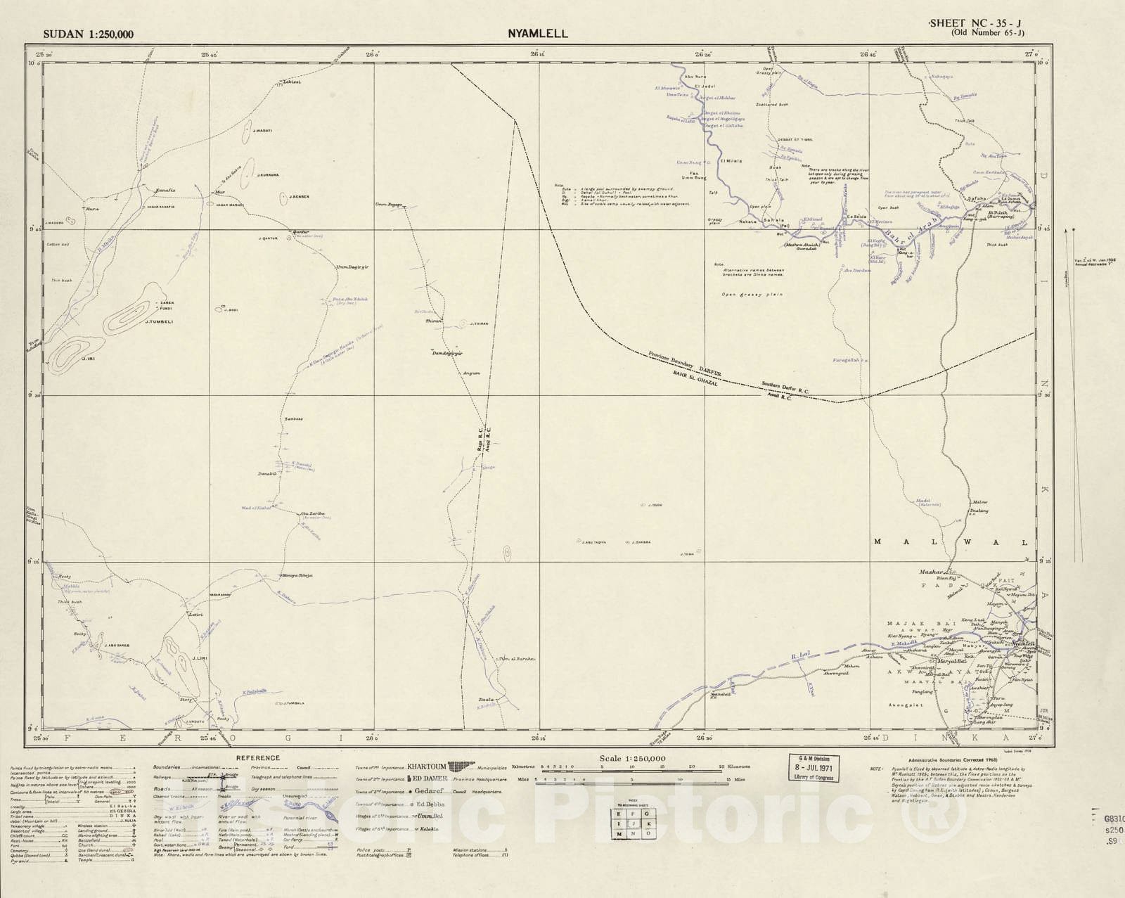 Historic 1909 Map - Sudan 1:250,000 - Nyamlell Sheet NC-35-J (Old Number 65-J; No Month) 1968 - Anglo-Egyptian Sudan