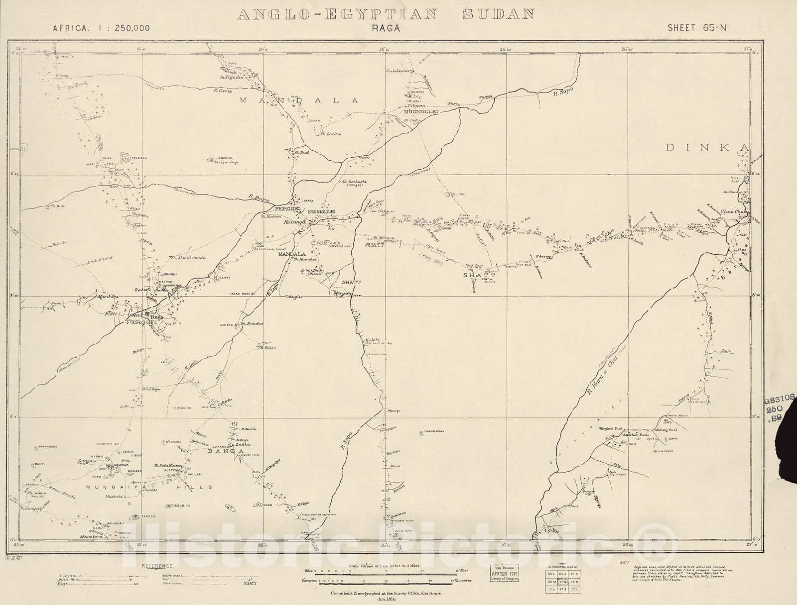 Historic 1909 Map - Sudan 1:250,000 - Raga Sheet 65-N Jun 1916 - Anglo-Egyptian Sudan 1