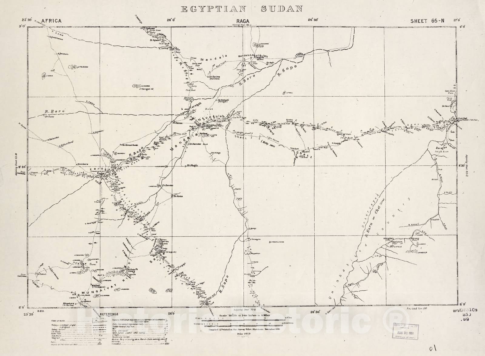 Historic 1909 Map - Sudan 1:250,000 - Raga Sheet 65-N Nov 1908 - Anglo-Egyptian Sudan