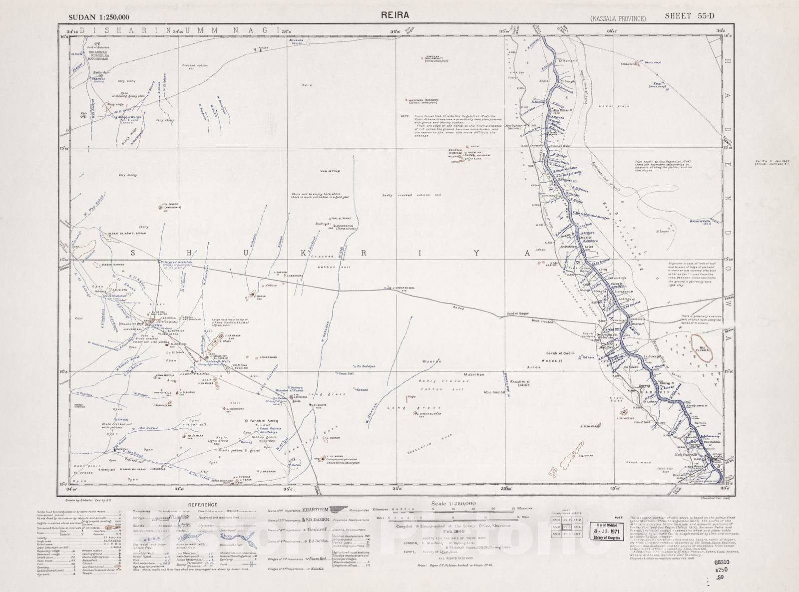 Historic 1909 Map - Sudan 1:250,000 - Reira Sheet 55-D Feb 1949 - Anglo-Egyptian Sudan