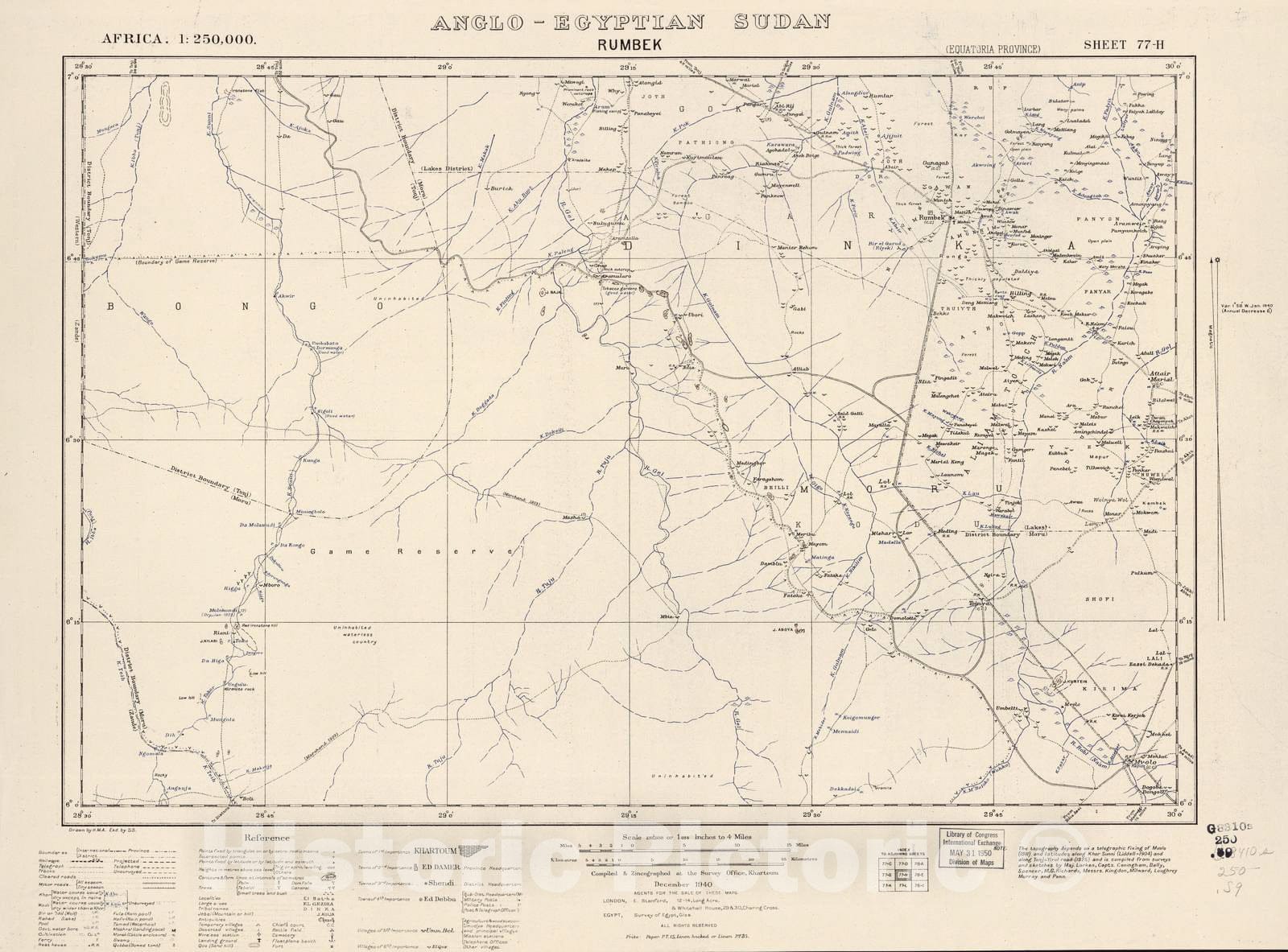 Historic 1909 Map - Sudan 1:250,000 - Rumbek Sheet 77-H Dec 1940 - Anglo-Egyptian Sudan 2