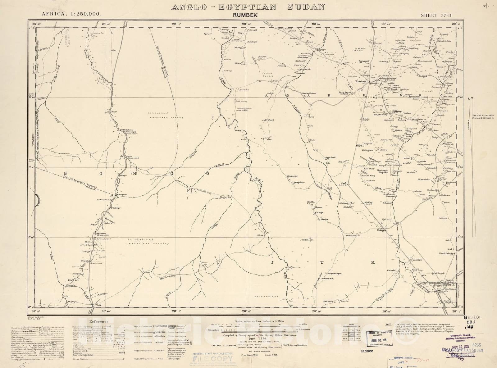 Historic 1909 Map - Sudan 1:250,000 - Rumbek Sheet 77-H Jun 1934 - Anglo-Egyptian Sudan