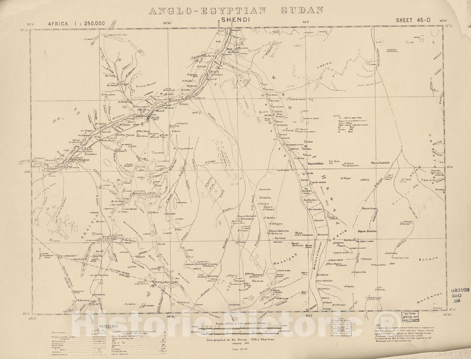 Historic 1909 Map - Sudan 1:250,000 - Shendi Sheet 45-O Jan 1913 - Anglo-Egyptian Sudan