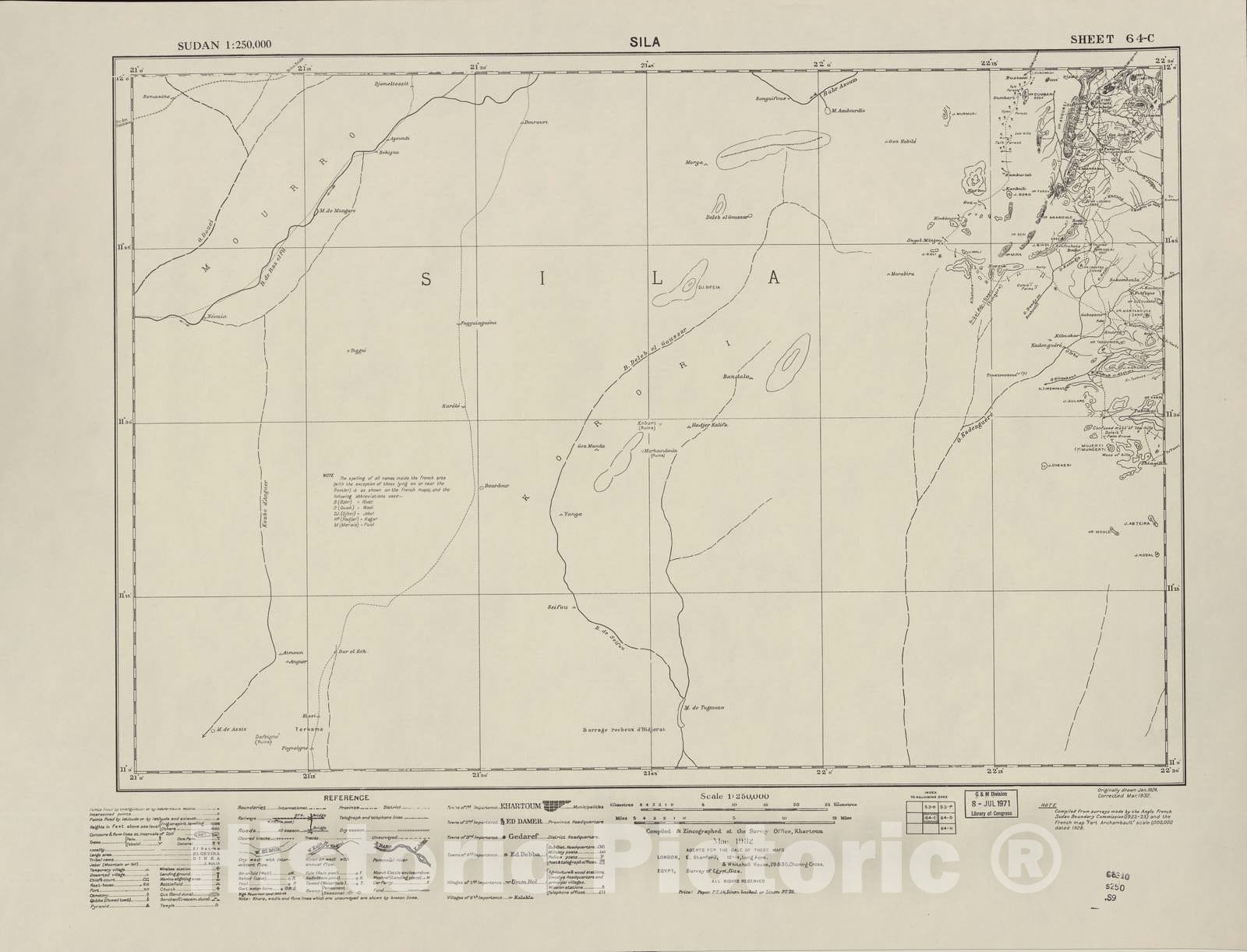 Historic 1909 Map - Sudan 1:250,000 - Sila Sheet 64-C Mar 1932 - Anglo-Egyptian Sudan