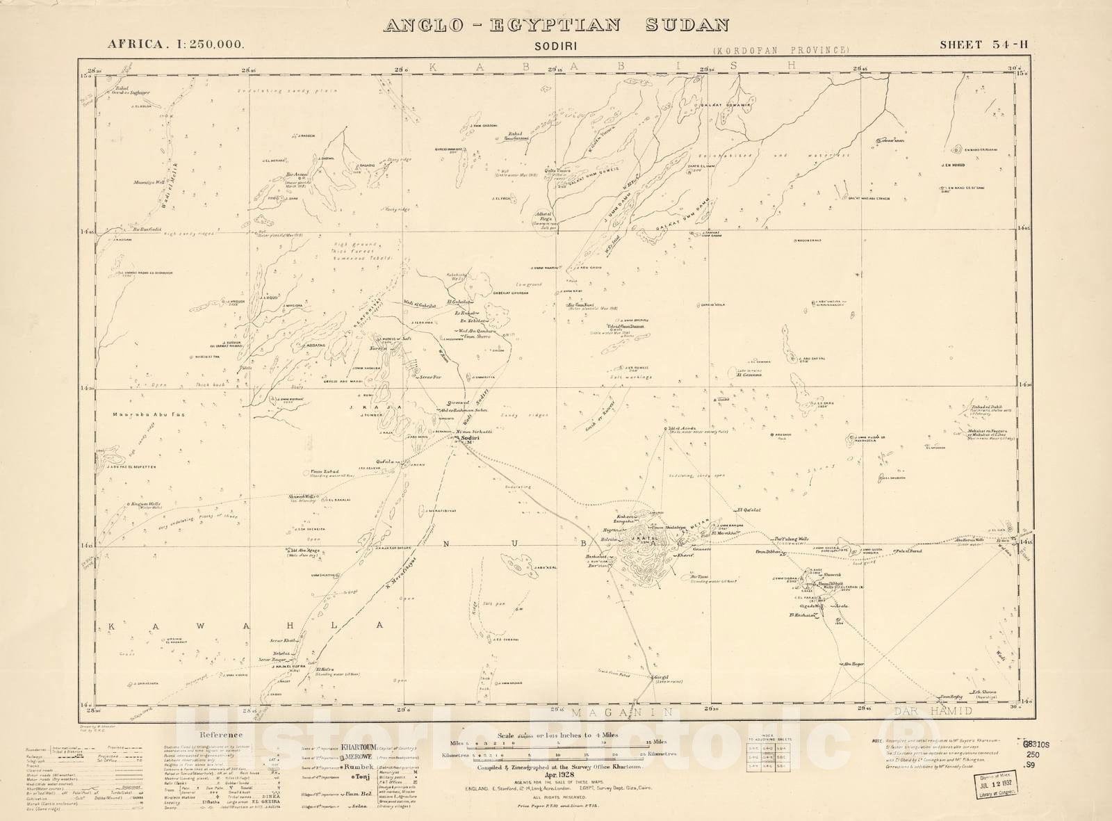 Historic 1909 Map - Sudan 1:250,000 - Sodiri Sheet 54-H Apr 1928 - Anglo-Egyptian Sudan
