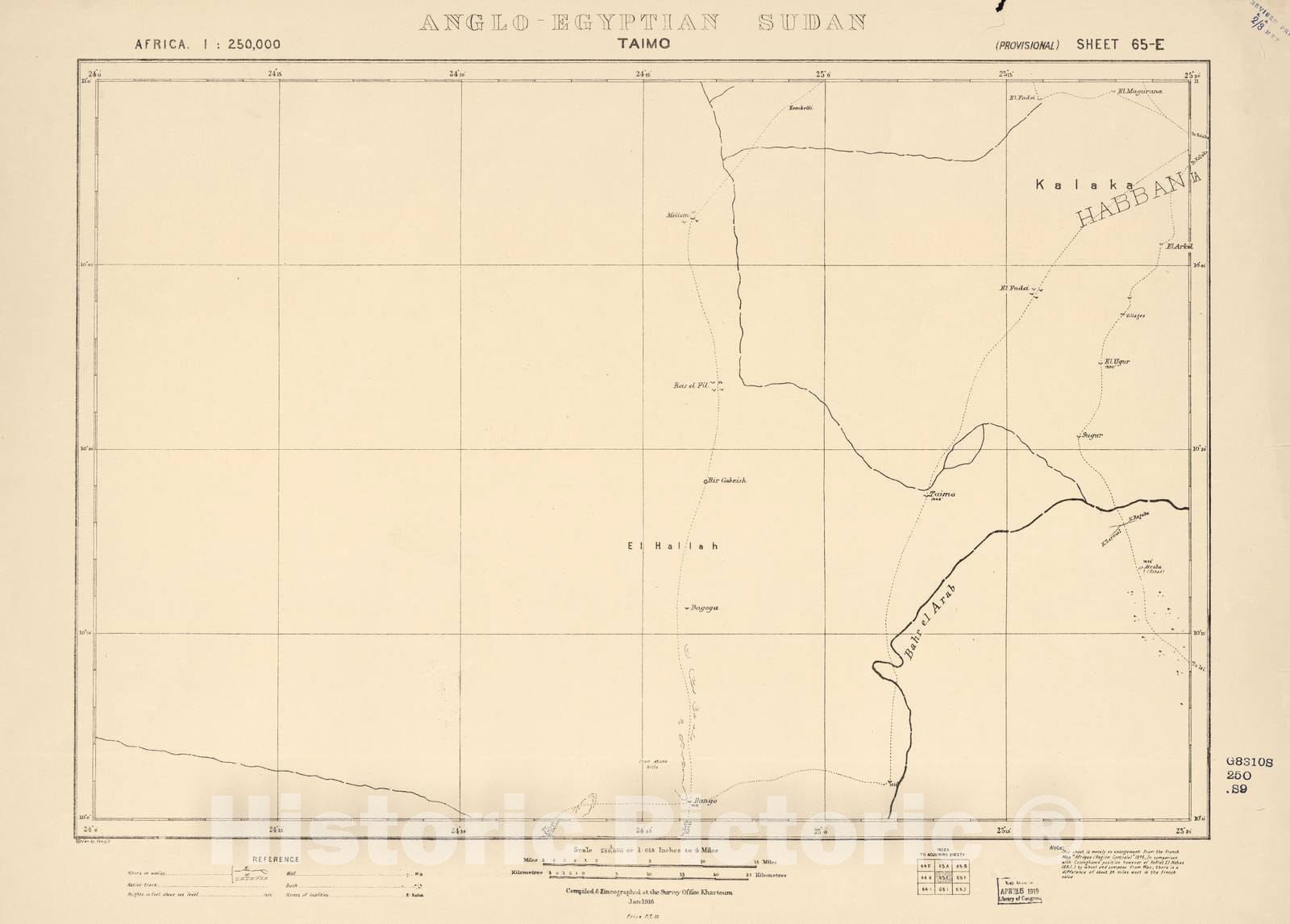 Historic 1909 Map - Sudan 1:250,000 - Taimo Sheet 65-E Jan 1916 - Anglo-Egyptian Sudan