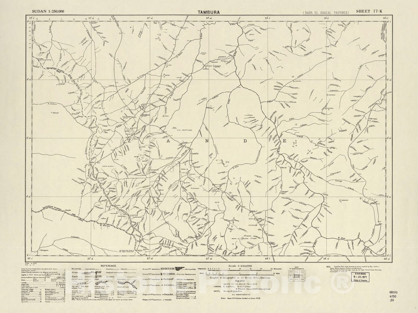 Historic 1909 Map - Sudan 1:250,000 - Tambura Sheet 77-K Mar 1932 - Anglo-Egyptian Sudan