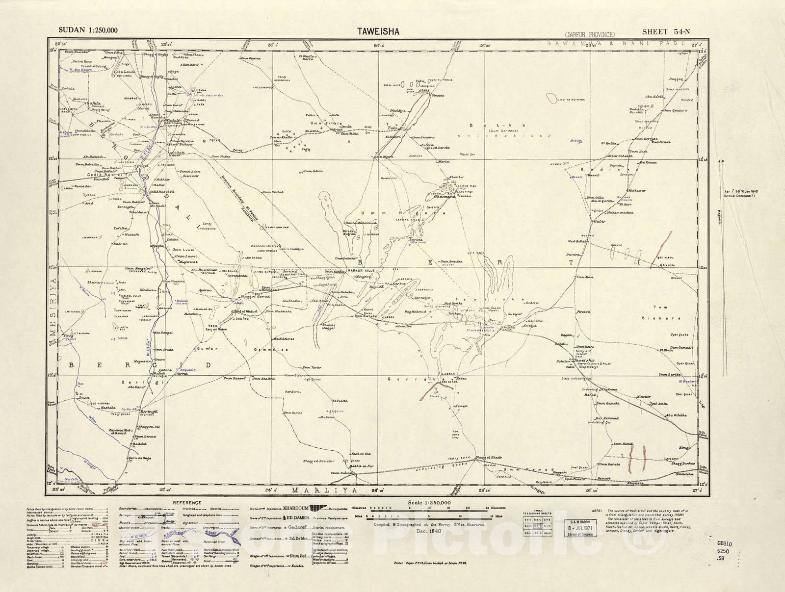 Historic 1909 Map - Sudan 1:250,000 - Taweisha Sheet 54-N Dec 1940 - Anglo-Egyptian Sudan