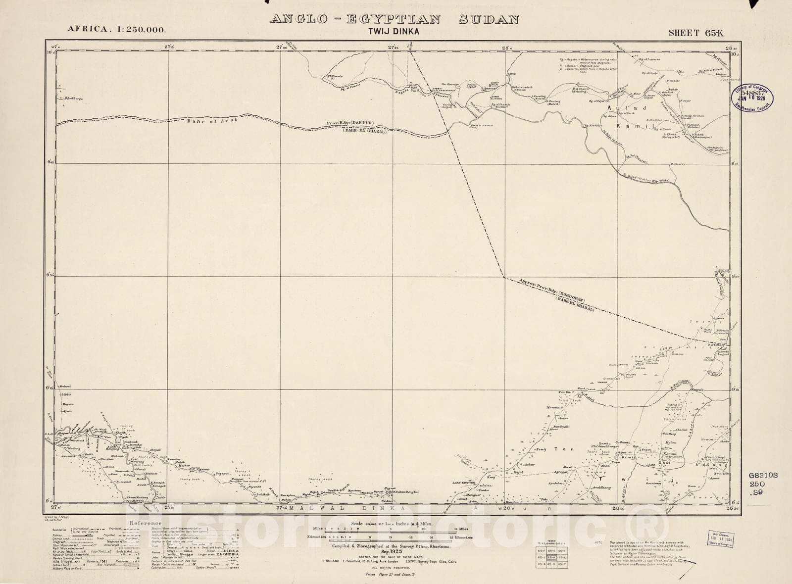 Historic 1909 Map - Sudan 1:250,000 - Twij Dinka Sheet 65-K Sep 1925 - Anglo-Egyptian Sudan