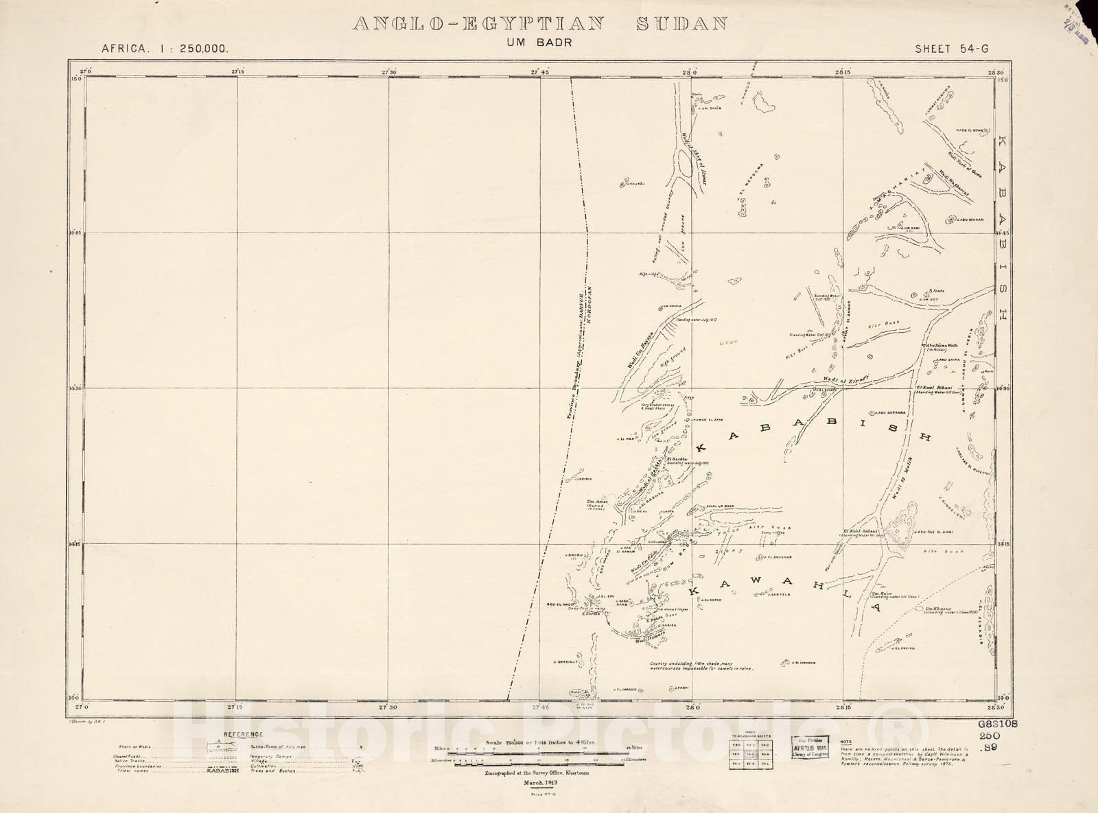 Historic 1909 Map - Sudan 1:250,000 - Um Badr Sheet 54-G Mar 1913 - Anglo-Egyptian Sudan