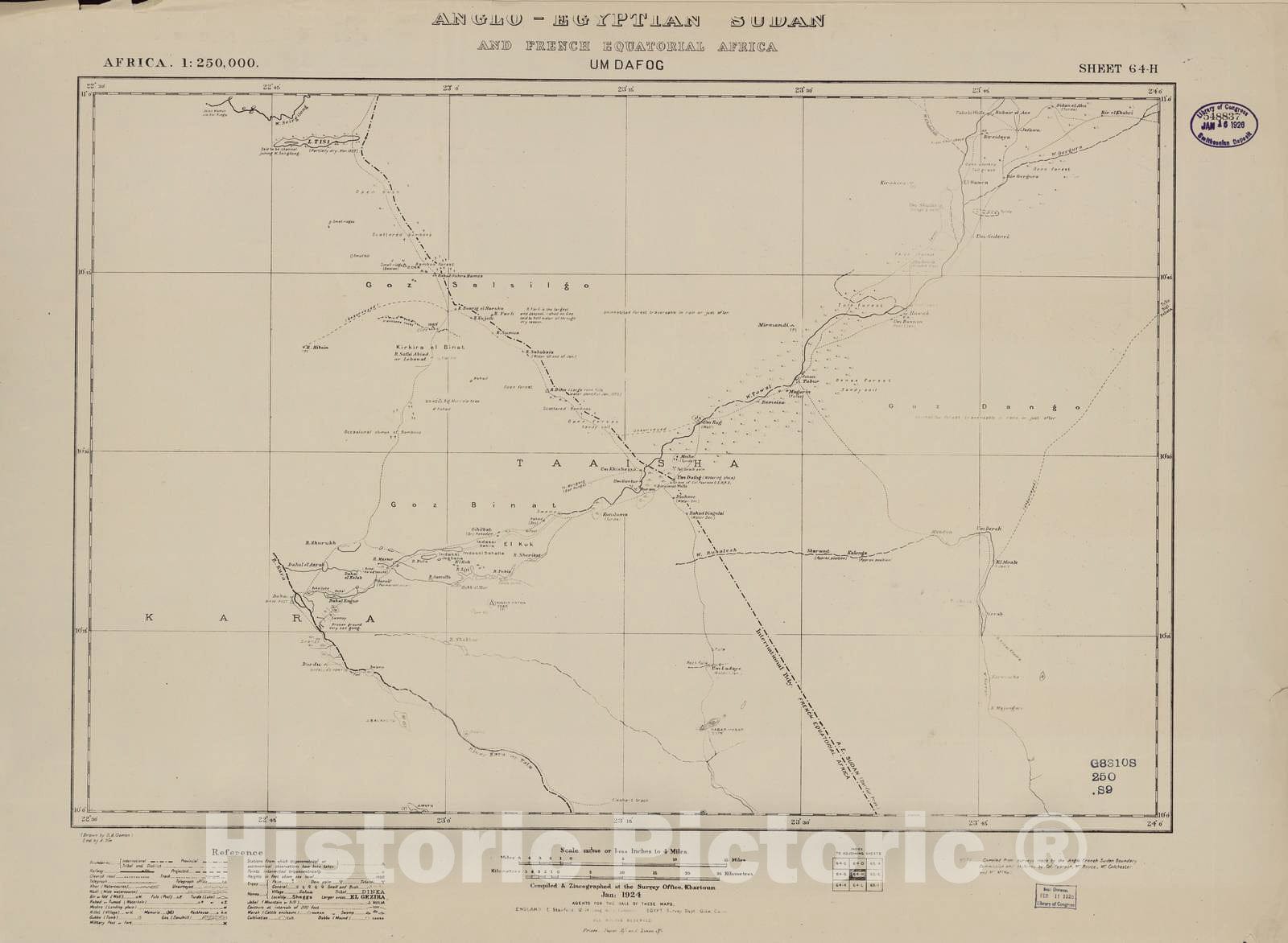 Historic 1909 Map - Sudan 1:250,000 - Um Dafog Sheet 64-H Jan 1924 - Anglo-Egyptian Sudan