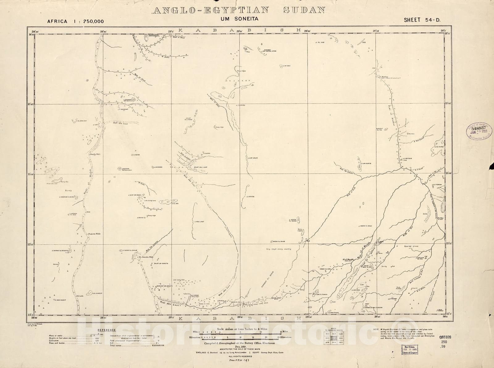 Historic 1909 Map - Sudan 1:250,000 - Um Soneita Sheet 54-D Dec 1919 - Anglo-Egyptian Sudan