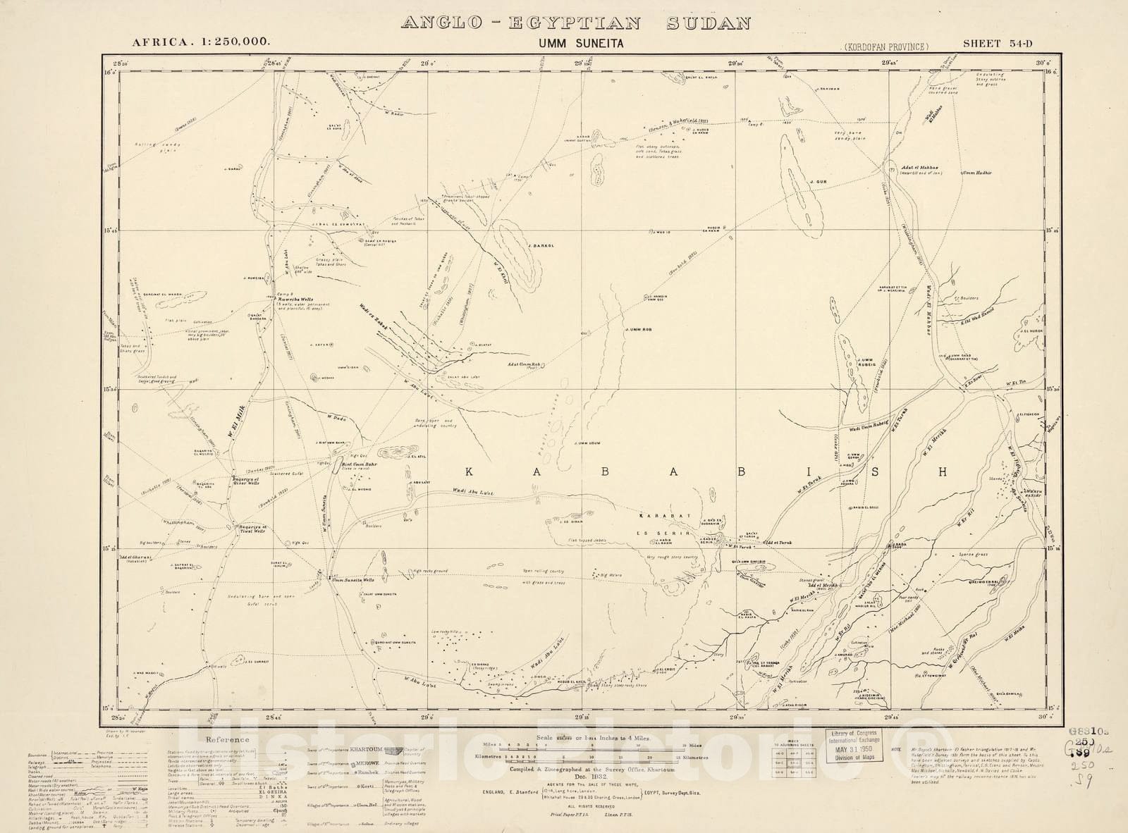 Historic 1909 Map - Sudan 1:250,000 - UMM Suneita Sheet 54-D Dec 1932 - Anglo-Egyptian Sudan