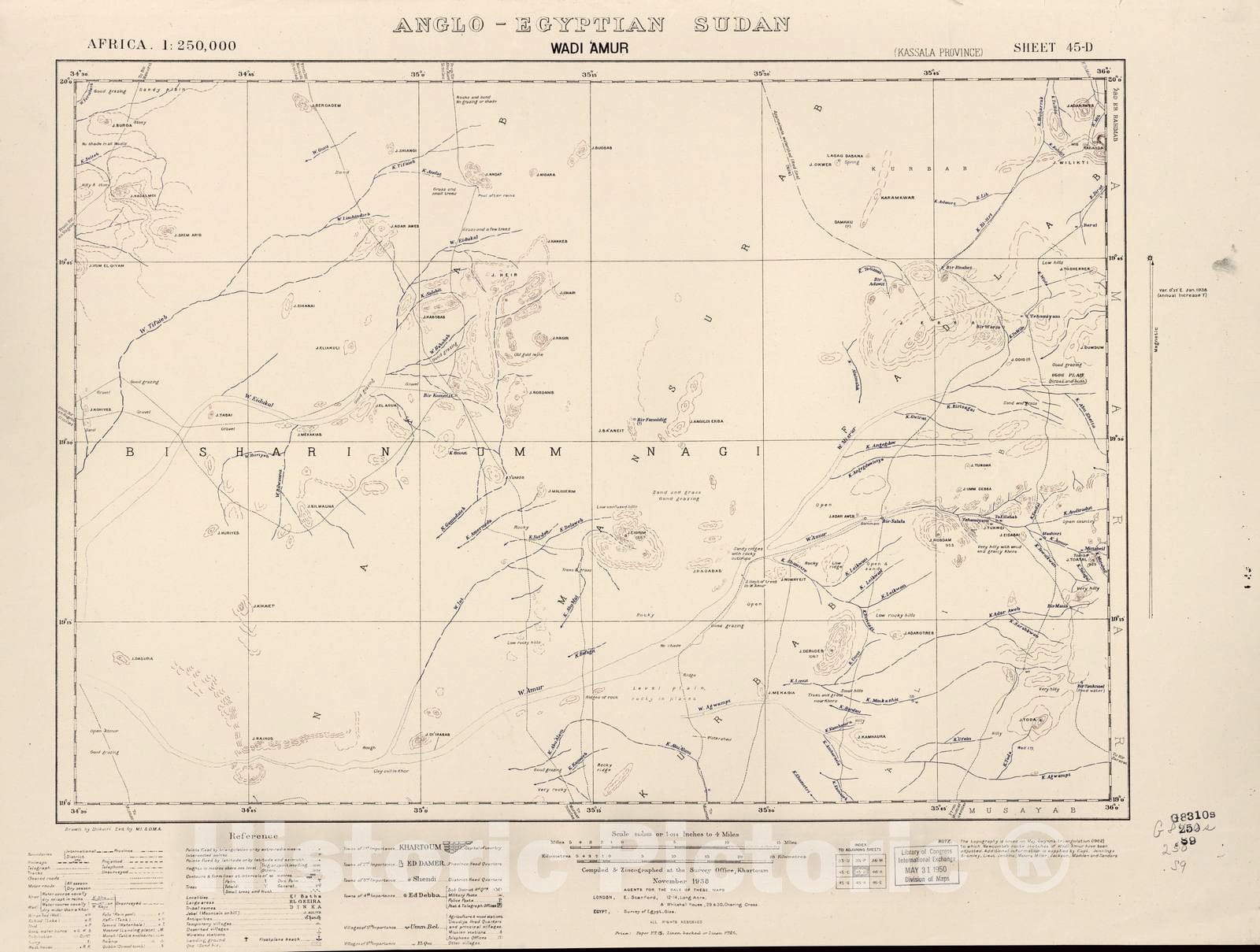 Historic 1909 Map - Sudan 1:250,000 - Wadi Amur Sheet 45-D Nov 1938 - Anglo-Egyptian Sudan