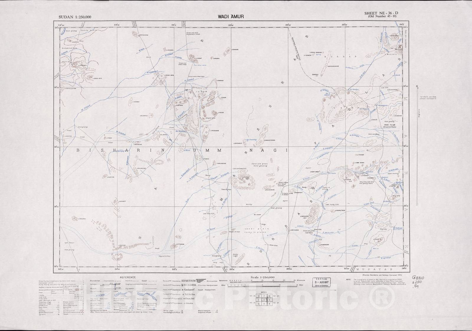 Historic 1909 Map - Sudan 1:250,000 - Wadi Amur Sheet NE-36-D (Old Number 45-D) 1975 - Anglo-Egyptian Sudan