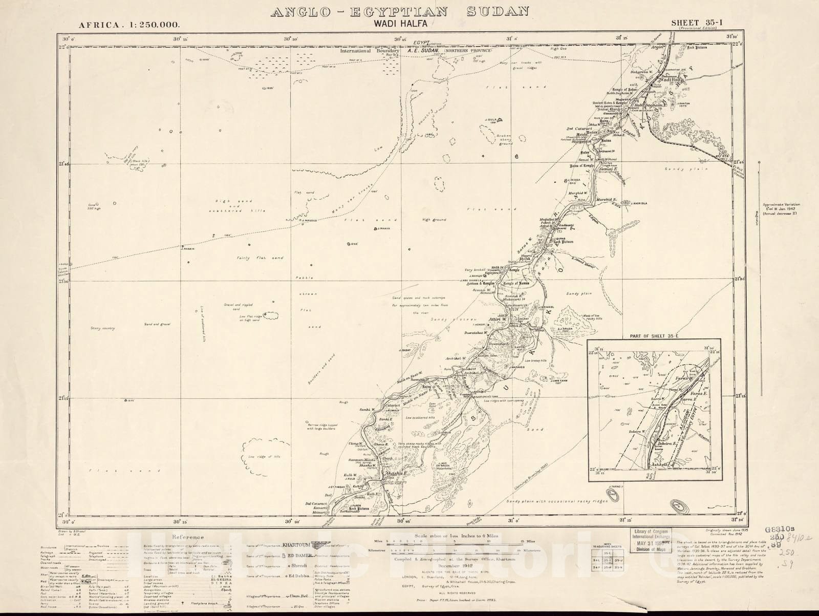 Historic 1909 Map - Sudan 1:250,000 - Waldi Halfa Sheet 35-I Dec 1942 - Anglo-Egyptian Sudan