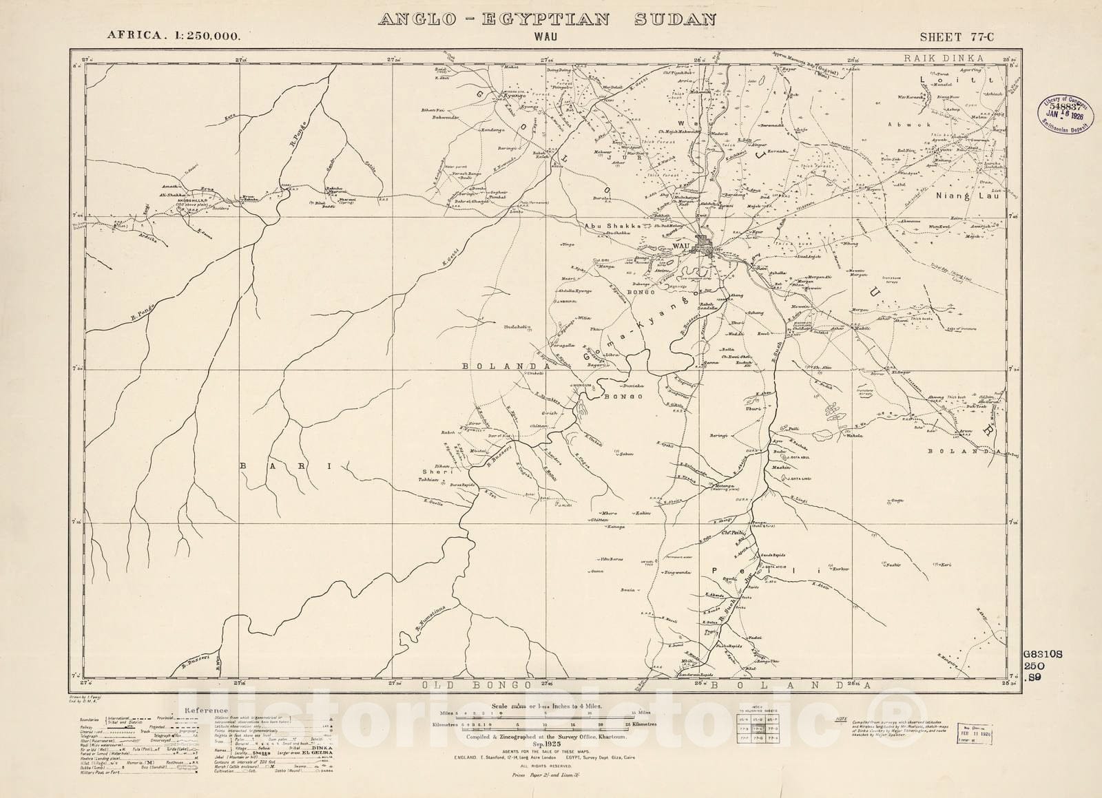 Historic 1909 Map - Sudan 1:250,000 - Wau Sheet 77-C Sep 1925 - Anglo-Egyptian Sudan