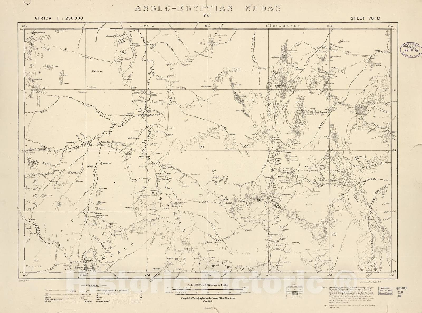 Historic 1909 Map - Sudan 1:250,000 - Yei Sheet 78-M Sep 1919 - Anglo-Egyptian Sudan
