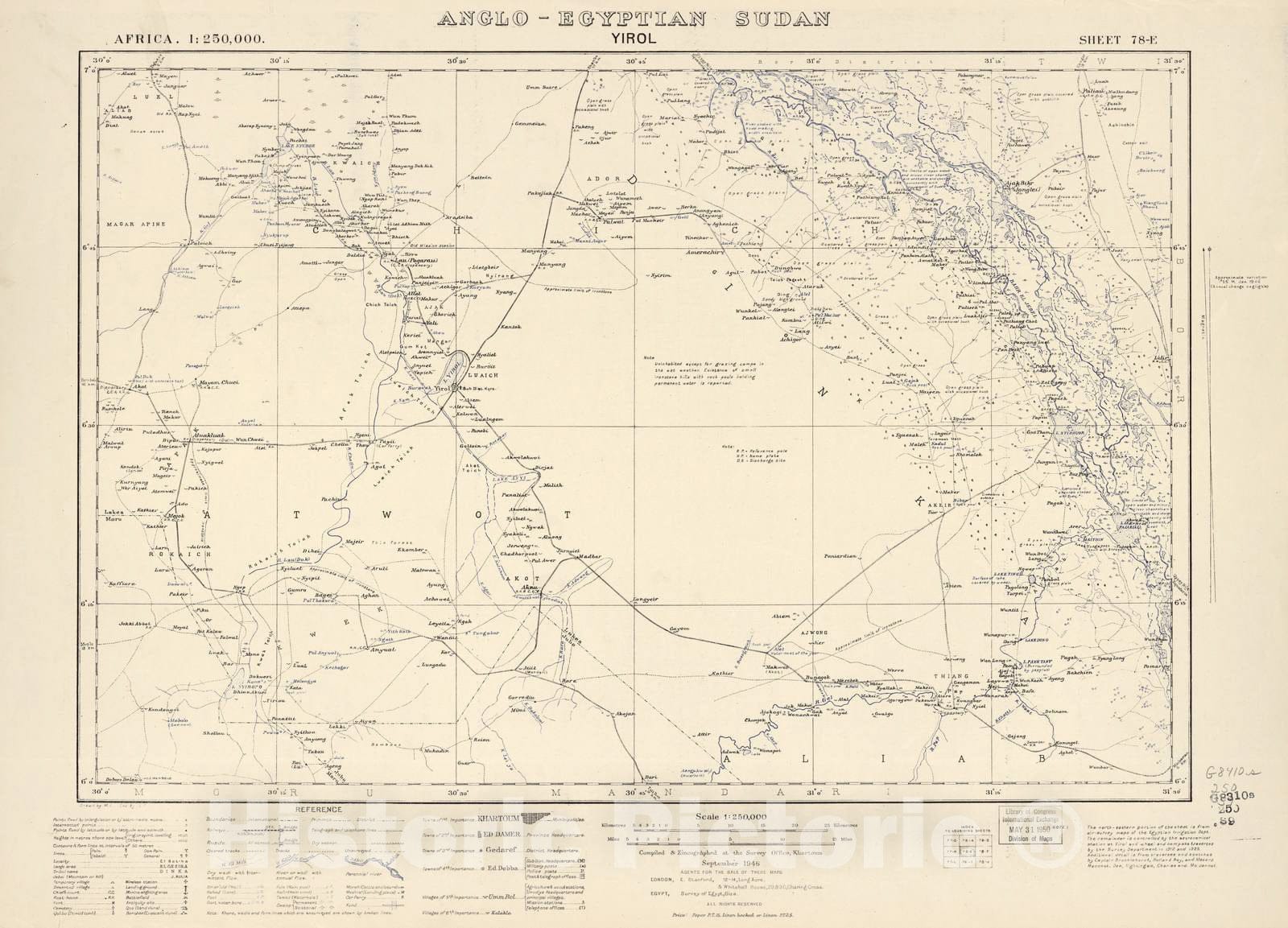 • Historic 1909 Map - Sudan 1:250,000 - Yirol Sheet 78-E Sep 1946 - Anglo-Egyptian Sudan