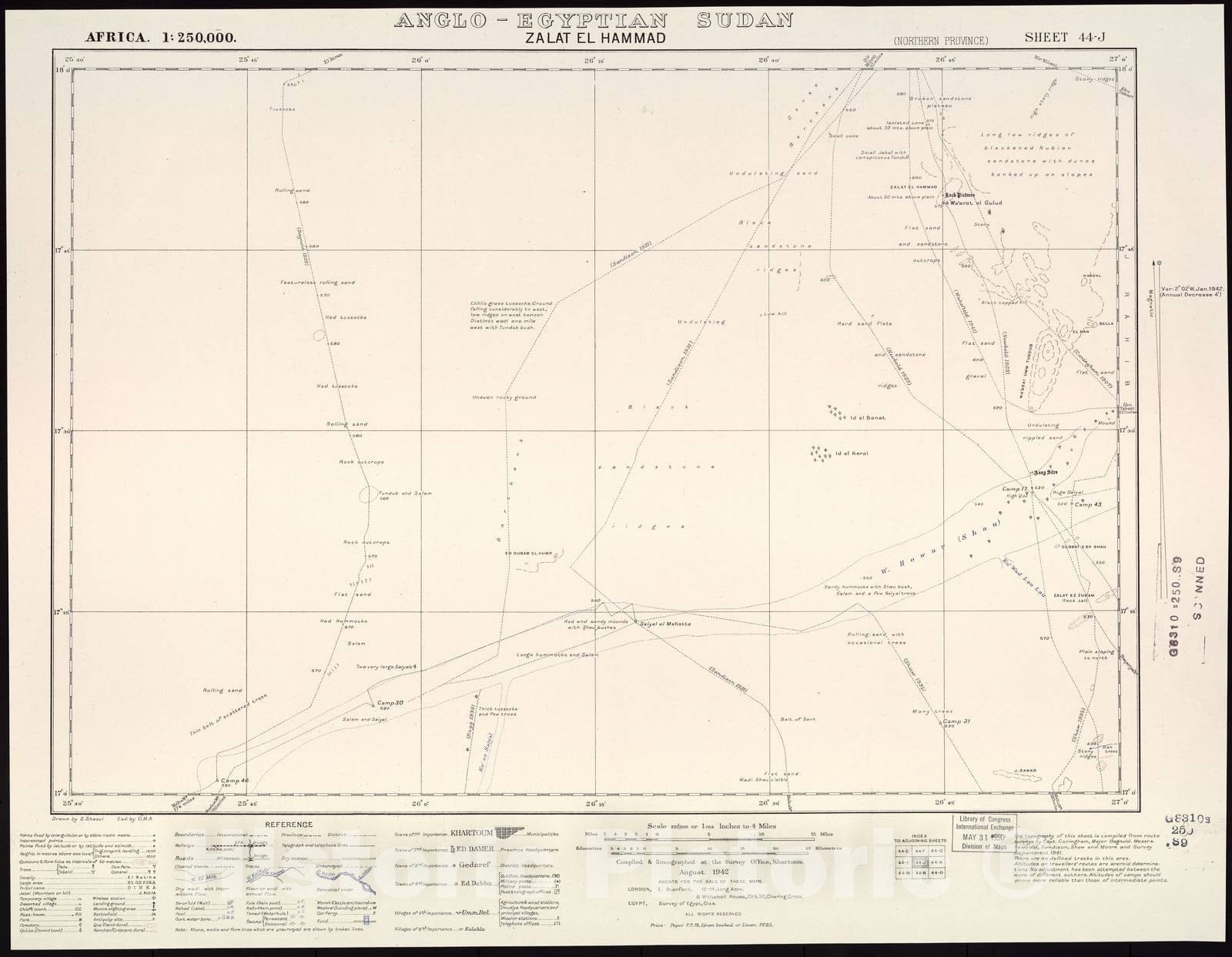 • Historic 1909 Map - Sudan 1:250,000 - Zalat El Hammad Sheet 44-J Aug 1942 - Anglo-Egyptian Sudan