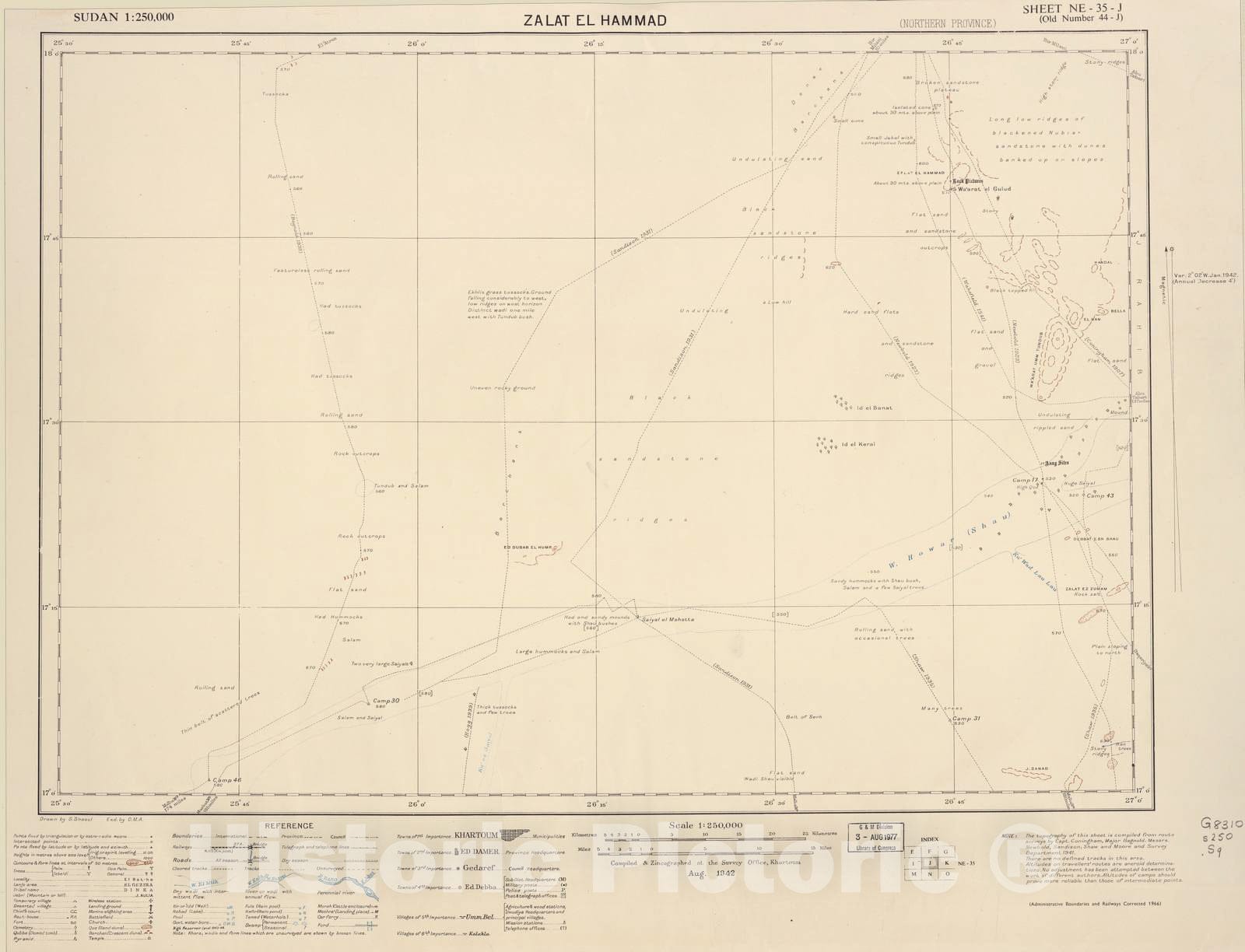 • .Historic 1909 Map - Sudan 1:250,000 - Zalat El Hammad Sheet NE -35-J (Old Number 44-J) Aug 1942 - Anglo-Egyptian Sudan