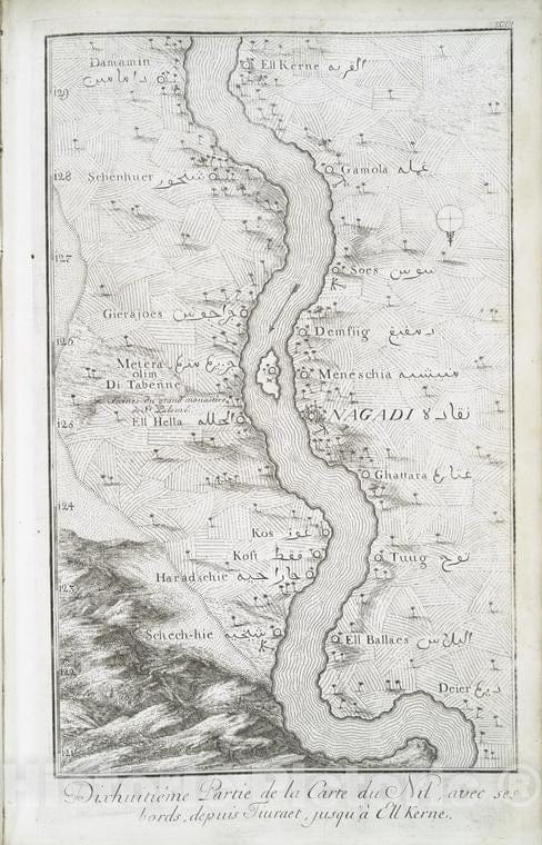 Historic Map - 1780 Egypt, Nubia And Thebes, Nile River, Dixhuitieme Partie De La Carte Du Nil, Avec Ses Bords, Depuis Tiuraet, Jusqu'A Ell Kerne.